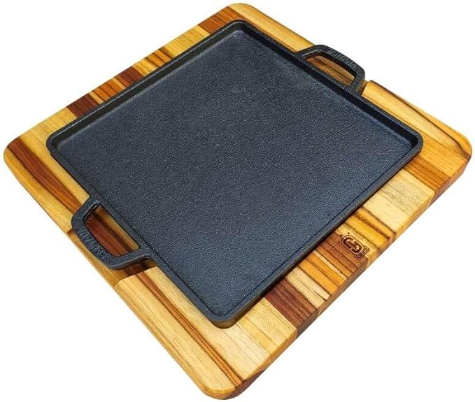 Chapa Quadrada de Ferro Fundido com Suporte de Madeira