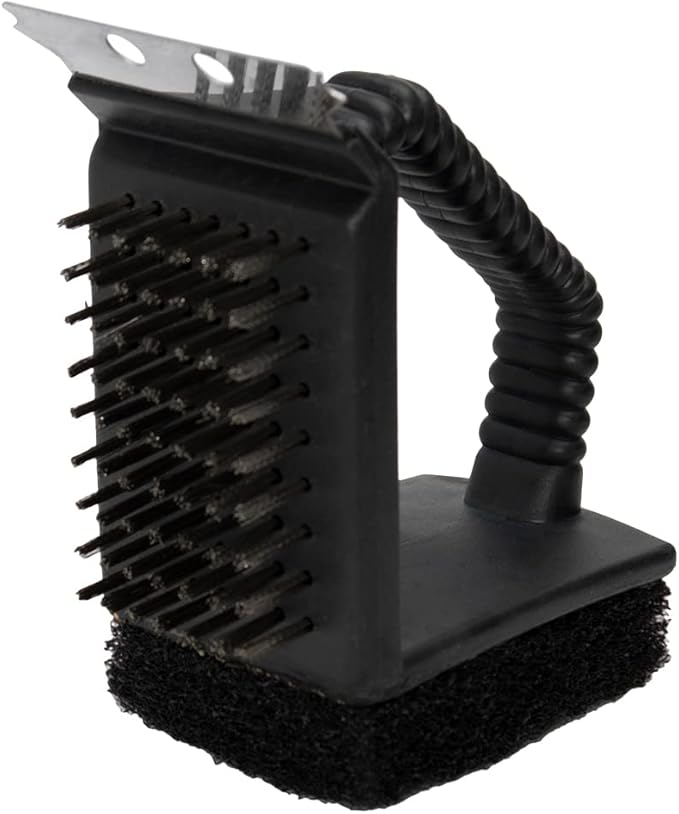 Após o churrasco, a limpeza pode ser um grande incômodo. A escova com cerdas em aço, raspador, bucha e com uma alça curta, é ideal para limpar grelhas de forma prática e rápida. Com seu formato compacto, proporciona maior precisão para a limpeza.
