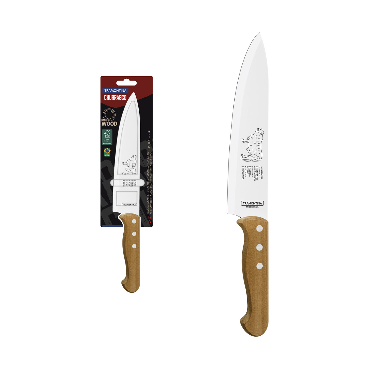 Com a faca para carne Tramontina Churrasco 8 polegadas, servir seus convidados será ainda mais prático e saboroso. Com lâmina de aço inox, ela garante maior durabilidade do fio de corte devido ao tratamento térmico. Além disso, o cabo de madeira natural dá um toque sofisticado na hora de servir. Seu churrasco será um sucesso com essa faca cheia de estilo!