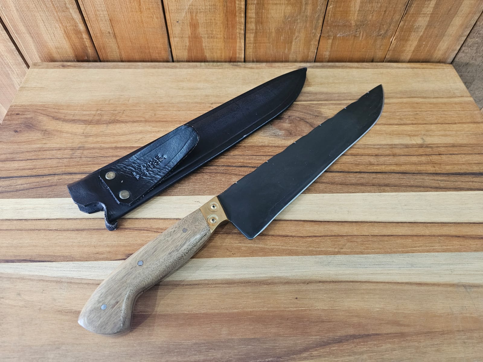 Acompanha bainha em couro e 1 faca.