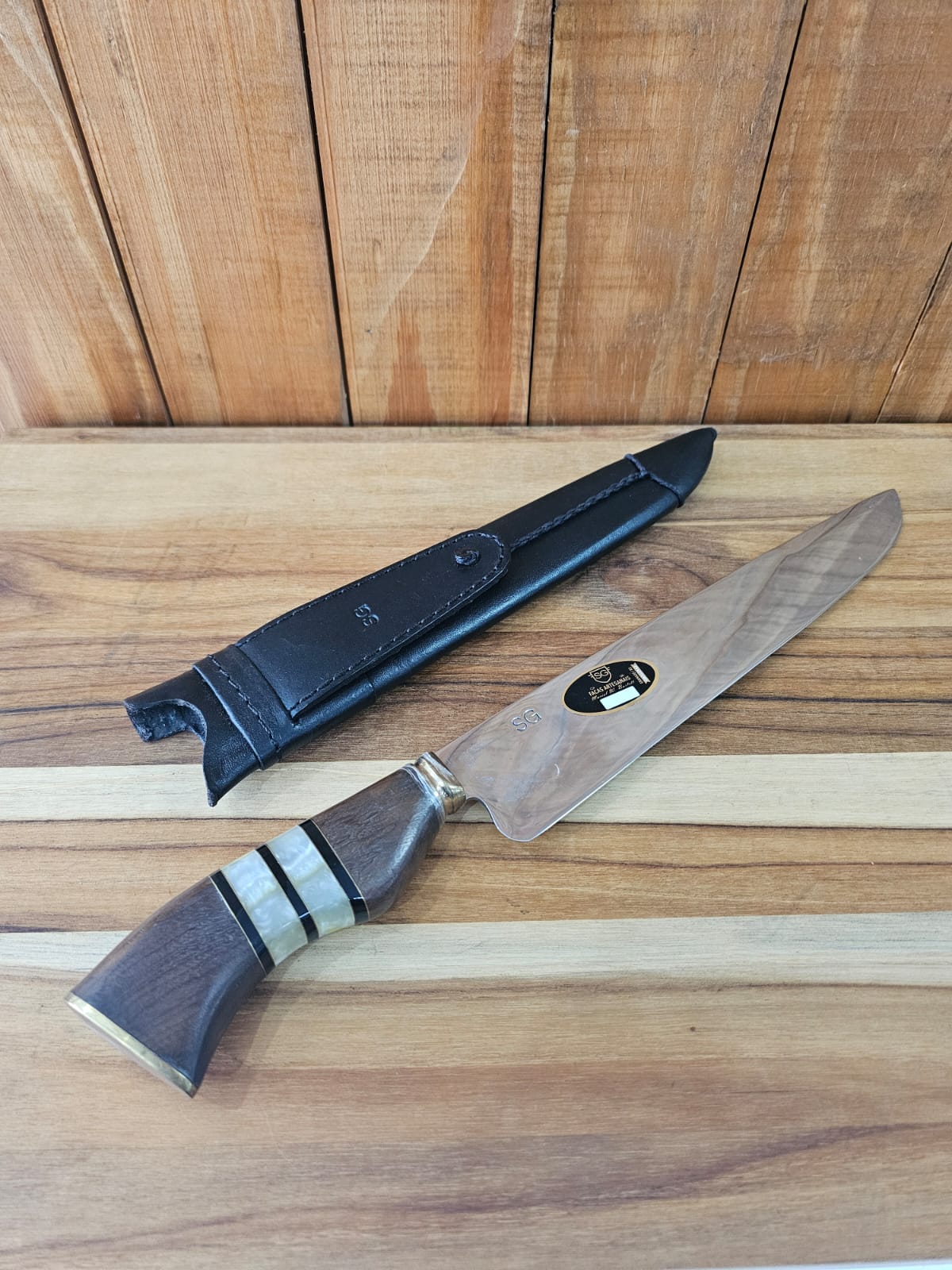 Faca Ponta Larga 10" Aço Cirúrgico Cabo de Madeira Trabalhado SG