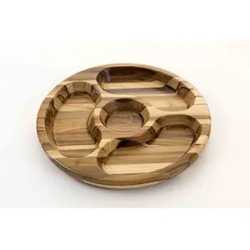A petisqueira redonda em madeira Teca é perfeita para o momento de servir o churrasco, com repartições para petiscos, farofas, molhos ou outros acompanhamentos de sua preferência e de seus convidados!
