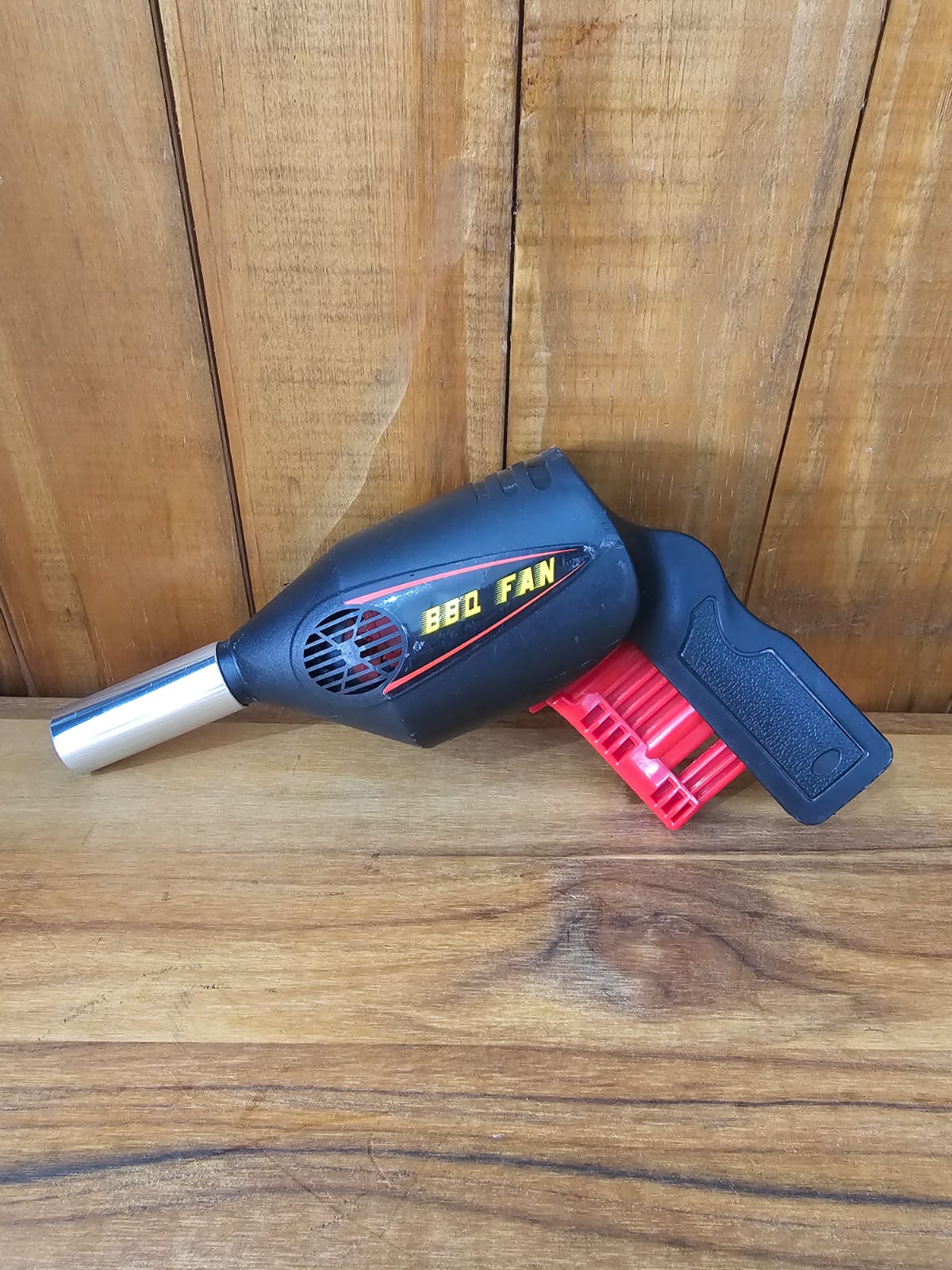 O soprador de gatilho para churrasqueira é fácil de usar, basta apertar o gatilho que ele emitirá uma pequena quantidade de ar, que ajudará a alimentar as brasas da churrasqueira, evitando faíscas e poeira.