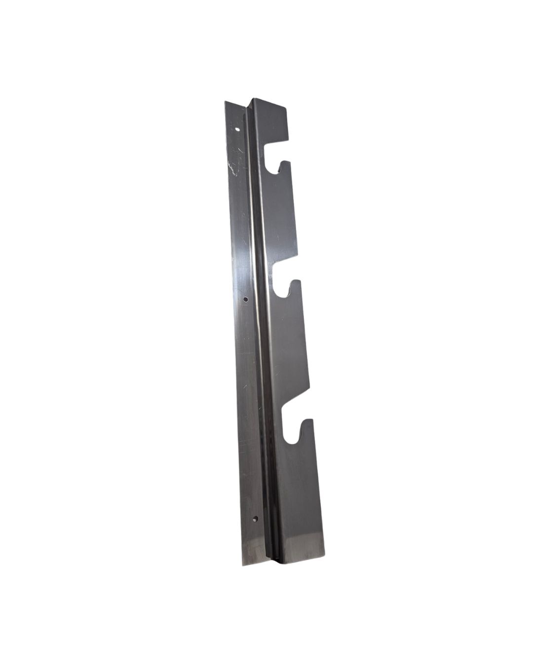 Suporte para sustentação das barras de apoio para espetos e grelhas, na parte lateral frontal e traseira da churrasqueira. Com 50 cm e 03 níveis de apoio. Fabricado em Aço Inox 430. Tubo ideal para encaixe nesse suporte é no diâmetro de 15 mm.